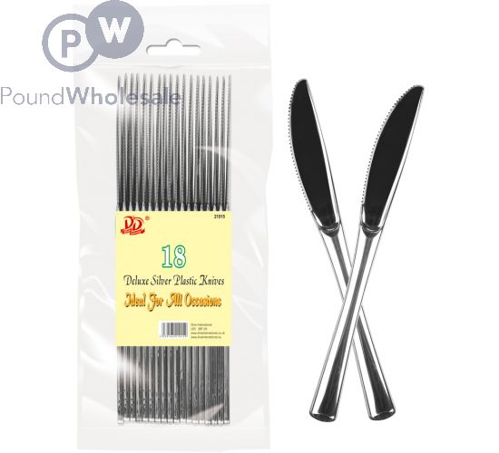 The Deluxe Silver Plastic Knives are ideal for parties, BBQs, outdoor events and all occasions. Robust and durable, these knives are washable, reusable and disposable.