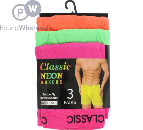 3pk Classic Full Neon Button Fly Boxers Neon Strap 3 Colours - Xlarge