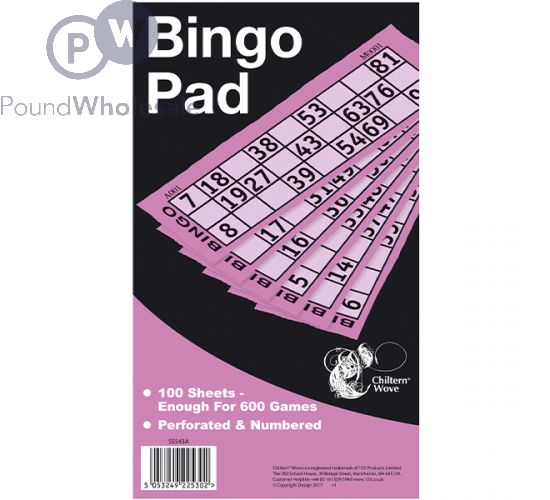 Specially designed for a game of bingo, the Chiltern Wove Bingo Pad includes 100 perforated sheets for easy tearing and distribution. Individually numbered with sections for players to mark, the Chiltern Wove Bingo Pad can be used for up to 600 games of bingo.