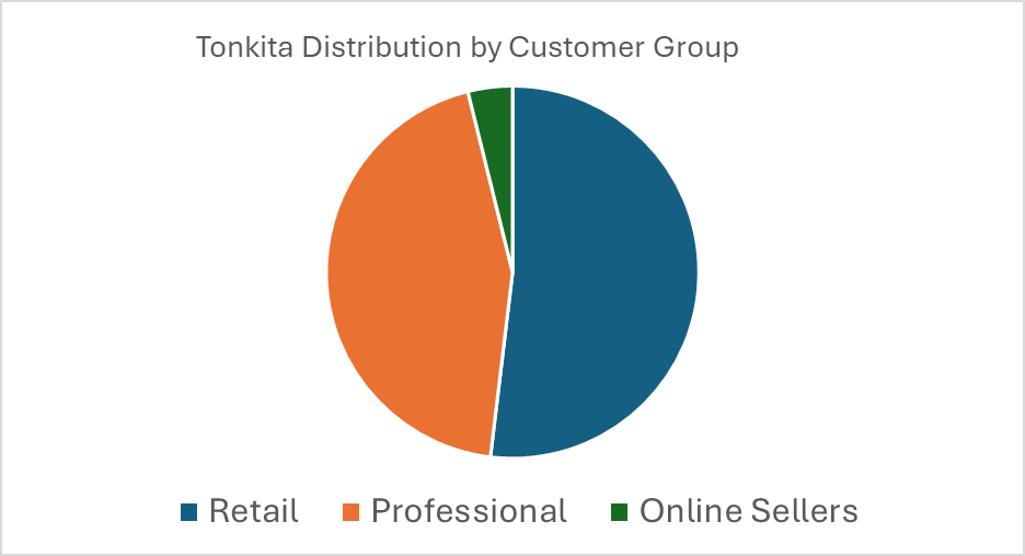 Pound Wholesale’s customers that provide retail or professional services are popular consumers of Tonkita’s cleaning products, vastly outperforming even one of Pound Wholesale’s most popular customer groups; online sellers.
