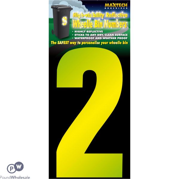 See full product descriptionAdhesive Hi Vis Luminous Yellow Wheelie Bin Number 2