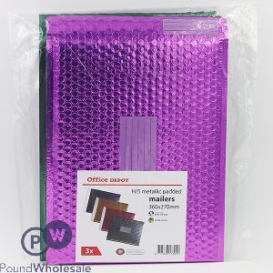See full product descriptionOffice Depot H/5 Metallic Padded Mailers 360mm X 270mm Assorted Colours 3pk