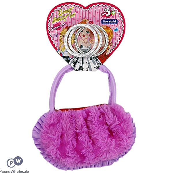 A beautiful accessory for any little beauty queen! This fashionable and soft handbag is accompanied with stylish bracelets to complete the look! Perfect for storing loose....
