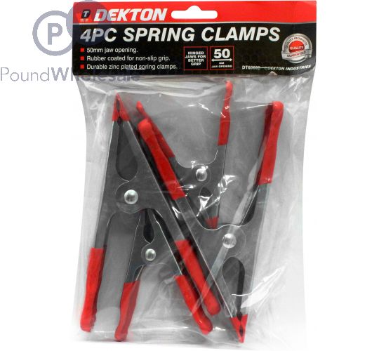The Dekton 3 Piece 4" Spring Clamp has a 50mm hinged jaw opening for superior grip. 4" Pack of 3 50mm jaw opening Hinged Jaw for better grip Heavy duty....