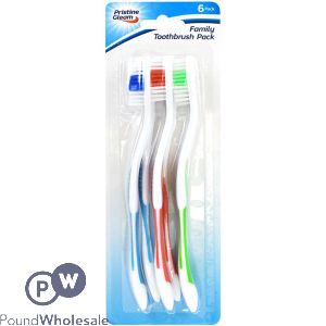 The Pristine Gleam Toothbrushes are in six value packs. 6pk Value Pack Assorted Colours Providing effective cleaning between teeth and along the gum line, the Pristine....