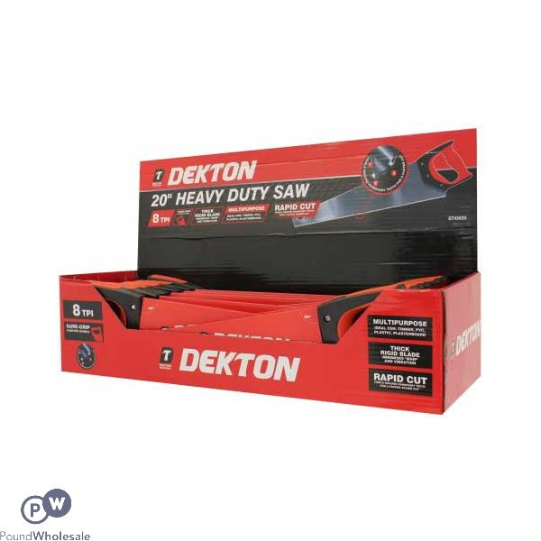 Ideal for home or professional use, the Dekton 20" Saws in CDUs includes 12 8 TPI saws with thick rigid blades, minimising 'whip' and vibration. CDU of 12....