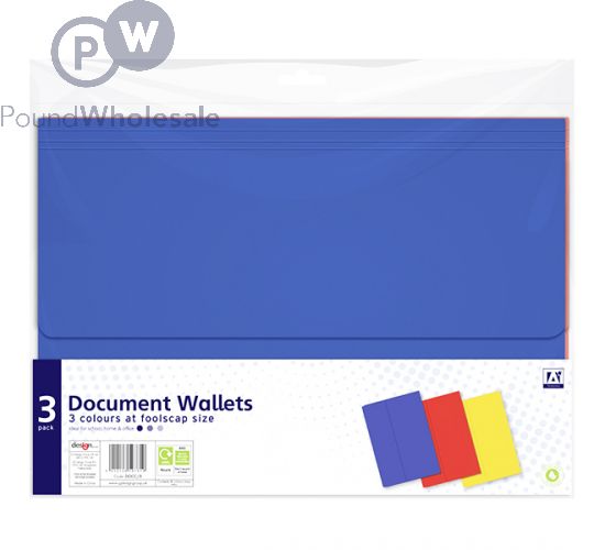 Document Wallets Foolscap Assorted Colours 3 Pack