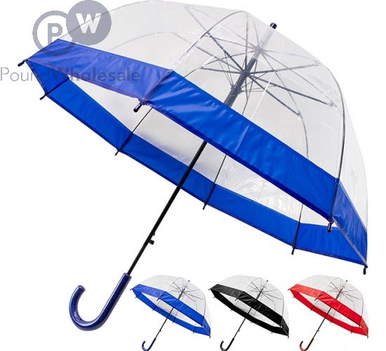 The Dome Umbrellas with Border is a robust design that keeps you dry in heavy rain! Featuring a stylish, ergonomic design, the Dome Umbrellas are made with heavy duty handles for a sturdy grip.