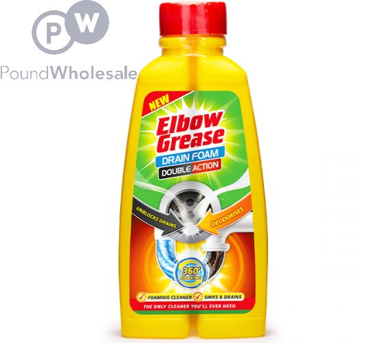 The Elbow Grease Drain Foam is a double-action robust cleaning formula that cleans and restores drains, sinks and pipes. Effectively tackling stubborn clogs and blockages, the Elbow Grease Drain Foam contains a unique formula that penetrates deep into the drain, dissolving grease, oil and debris.