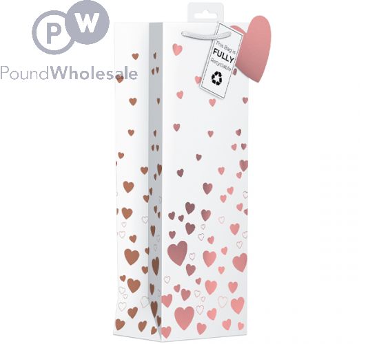 With an artistic, romantic print, the Giftmaker Hearts Gift Bag is a Rose Gold and White design perfect for accommodating bottles of champagne, prosecco, wine, beer, spirits and other bottled gifts.