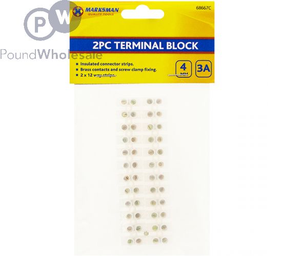 The Marksman Terminal Blocks are insulated connector strips for securing two or more wires together, securing and/or terminating wires. 2pc 12 Way 6mm 6A Brass Contacts....