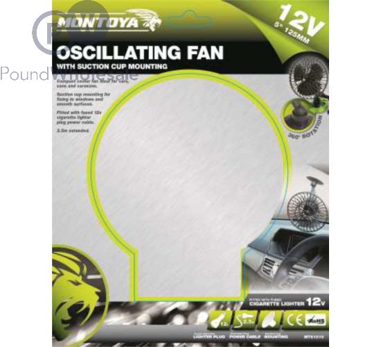 The Montoya Oscillating Car Fan includes a convenient suction cup mounting for securing to windows and smooth surfaces. Ideal for adding a refreshing breeze to cars, vans and caravans, the Montoya Oscillating Car Fan can be powered by 12V power output sockets.
