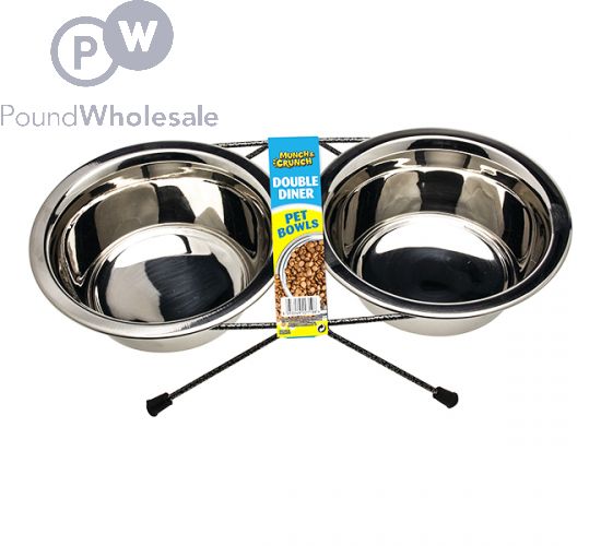 The Prima Double Diner Pet Bowl Set includes two 11cm Stainless Steel Dog & Pet Bowls with a stand for serving multiple pets, litters and very hungry pets! 3pc 500ml....