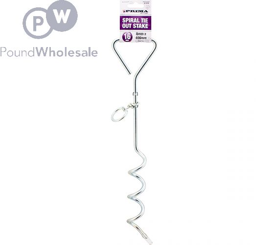 The Prima Spiral Tie Out Stake is easy to screw into the ground and prevents dogs from getting lost, whilst allowing slack to roam and play in a designated area.