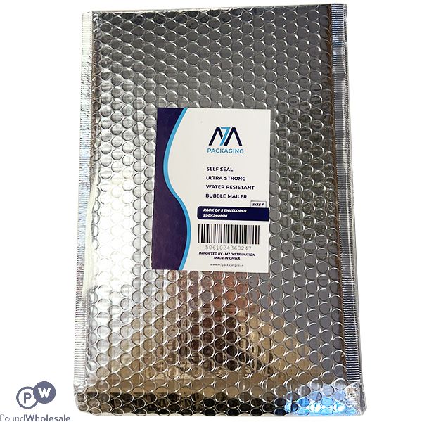 Size D Silver Metallic Bubble Water-Resistant Mailing Bags 3 Pack 180mm X 265mm